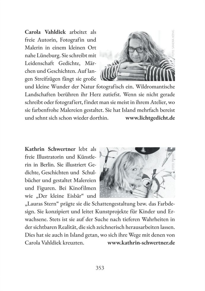 Einzigartig interaktiv bebildert mit farbigen Fotografien aus Island und künstlerischen Schwarzweiß-Illustrationen von Kathrin Schwertner.