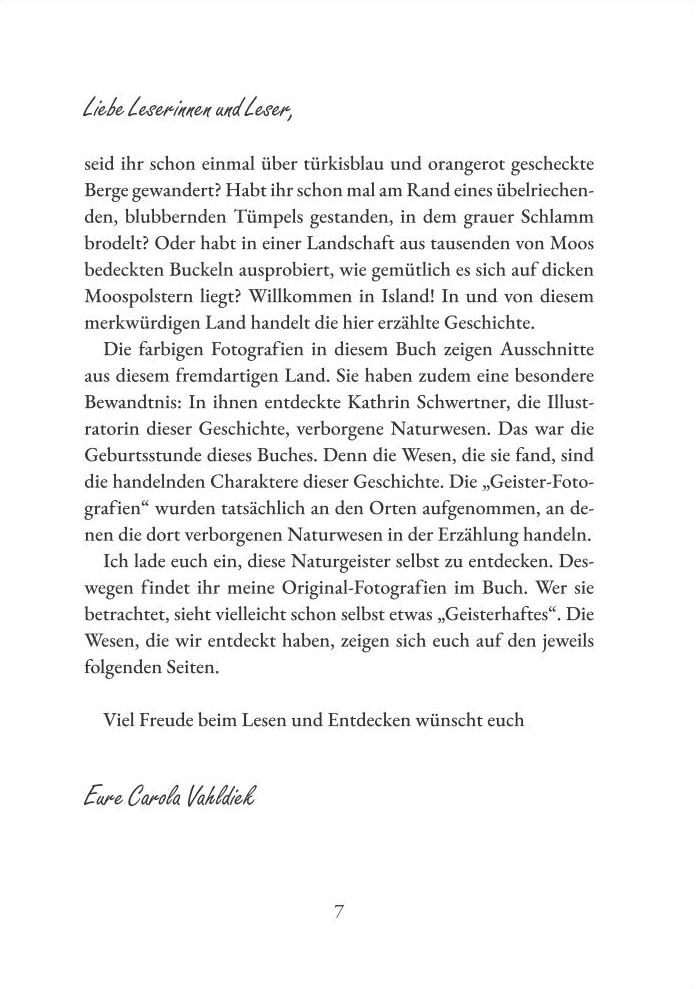 Die abenteuerliche Reise führt quer durch das außergewöhnliche Land am Polarkreis. Mit tatkräftiger Unterstützung durch Michael und viele kluge Naturwesen vermittelt sie nebenbei auf sehr unterhaltsame Art spannendes Wissen über die Landschaft und Natur Islands – dem Land, in dem man mit eigenen Augen der Entstehung der Erde zusehen kann.