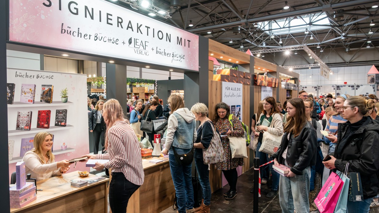 Ebenso veranstalten viele Verlage Signiertermine an ihren Verlagsständen.