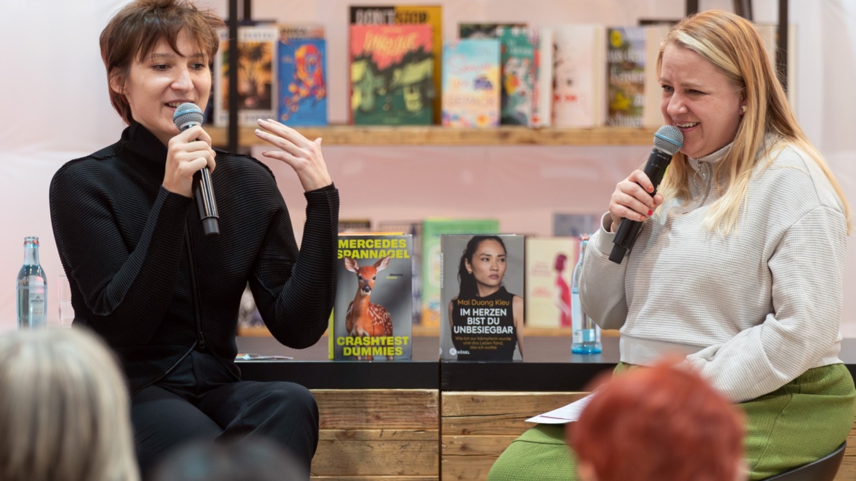 Die #buchbar in Halle 4 steht für eine besonders intime und entspannte Atmosphäre. Hier können Besucher:innen eine kurze Auszeit vom Trubel der Messe nehmen und zugleich in spannende literarische Welten eintauchen, darunter auch zahlreiche Erstlingswerke – von Comic bis Roman, von autobiografisch bis fiktional. Mehr als ein Dutzend Debütautor:innen gaben Einblicke in ihr Schreiben und Denken und kamen anschließend am Community Table mit interessierten Messebucher:innen ins Gespräch, beantworteten Fragen und signierten Bücher.