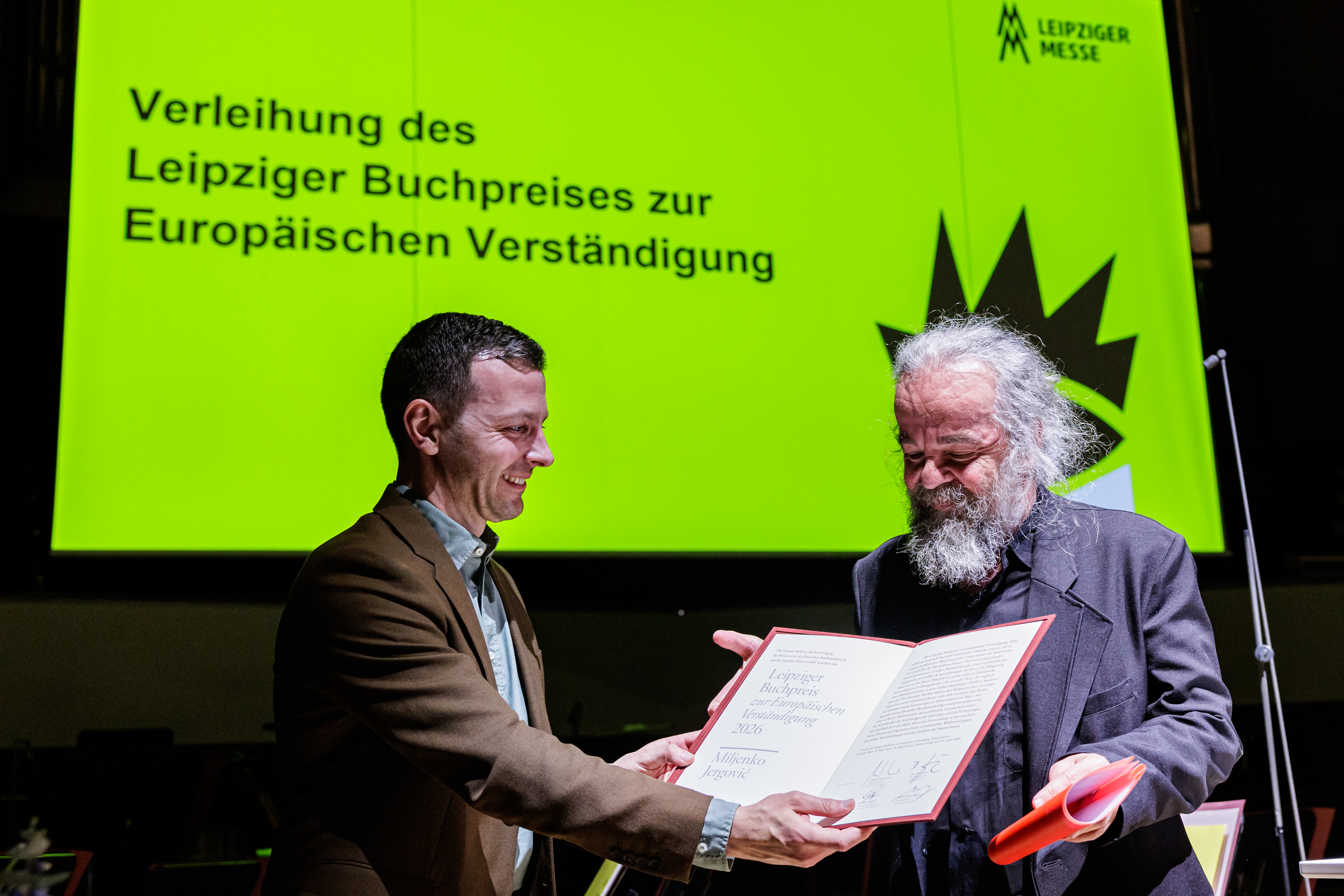 Impression of the stage and audience during the award ceremony at the Leipzig Book Fair 2025