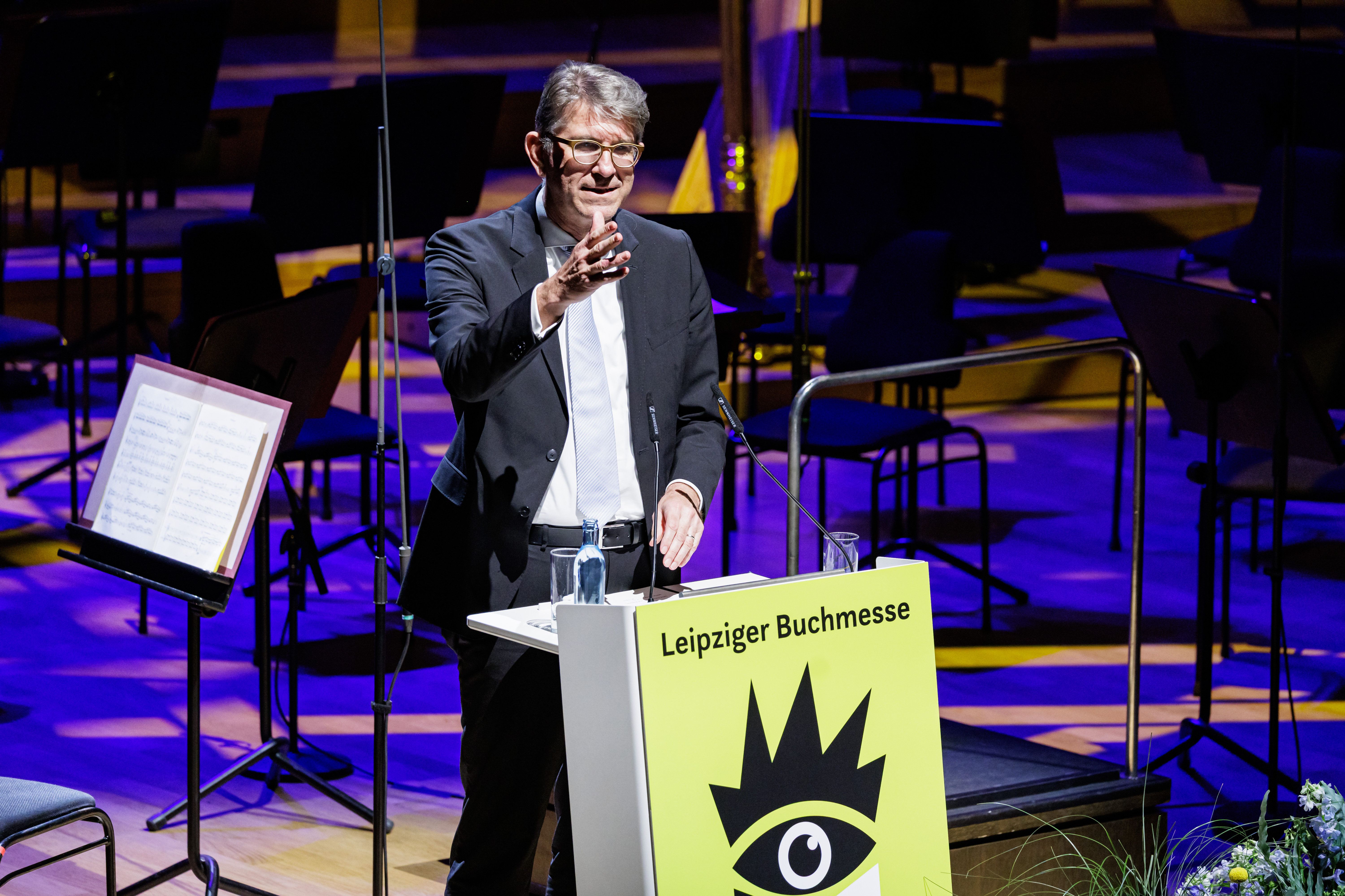 The award ceremony of the Leipzig Book Fair Prize will be recorded in its entirety by the TV service provider parq.media and broadcast as a mixed signal (4 cameras + crane). The event will also be streamed.