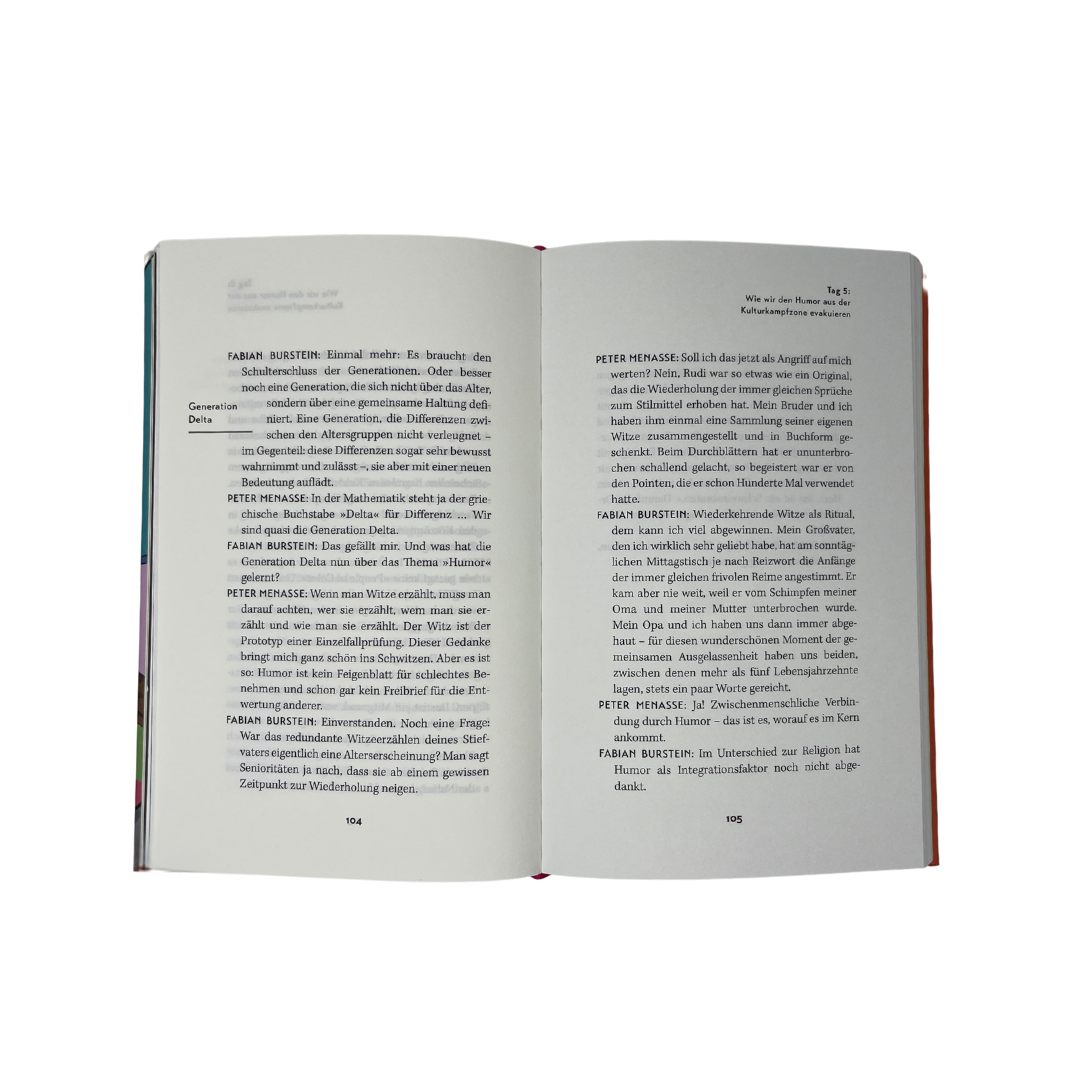 Am Beispiel ihrer Freundschaft wollen Burstein und Menasse einen Gegenentwurf wagen. Anhand großer Themen wie Klimawandel, Ideologie, Geschlechterverhältnis, Bildung und Arbeitswelt entwickeln sie einen Weg, der die Kluft zwischen den Generationen überwindet: die Generation Delta, eine Haltung und zugleich die Hoffnung auf eine Jugend, die imstande ist, mit Unterschieden zu leben.